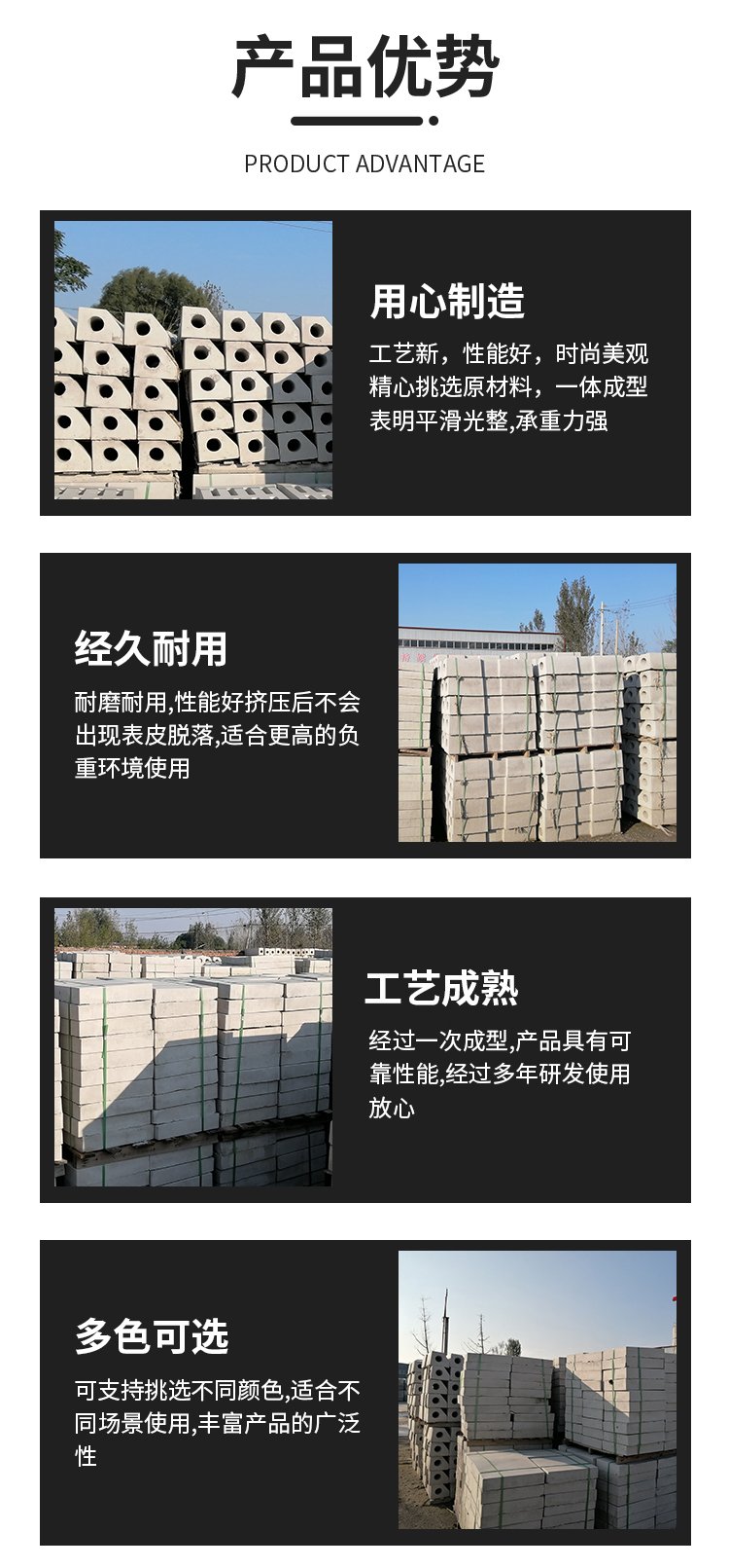 曲阜市興圣建材有限公司主要生產(chǎn):各種路面透水磚,護(hù)坡磚,路沿石,仿木護(hù)欄,仿木亭子,水泥彩瓦,脊瓦, 水表箱,閥門(mén)箱各種井蓋,水泥蓋板,雨水篦子 等產(chǎn)品專業(yè)生產(chǎn)加工的公司。